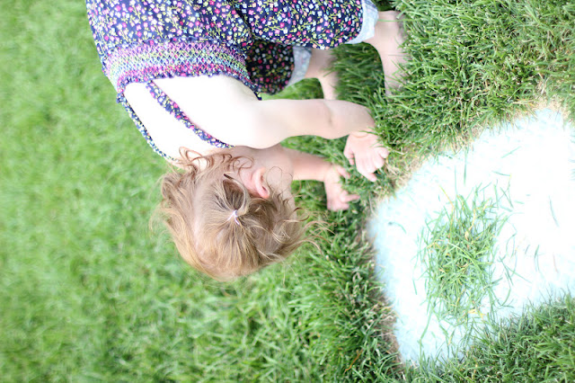 I seriously debated including this picture because I know of a few different groups of people who read this, and I don't know if it's smart to admit that I read the Fifty Shades of Grey series. I know that I'll want to remember this little story, so I'm taking a chance with including it. We put Kaitlyn to bed and brought the video monitor down to the grass with us. At one point, we saw her grabbing a book from what we thought was her toy bin. When we came in to go to bed, this is what we found. Don't worry, this book does not include illustrations. ;)