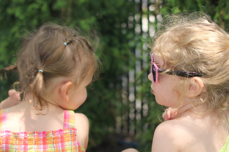 | The girls wanted to help Daddy with his sunscreen, and he got a back massage. Win-win. |